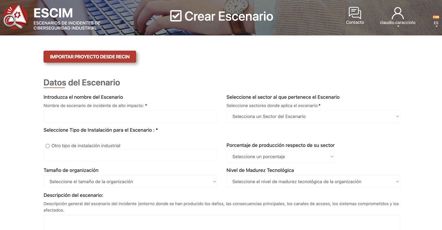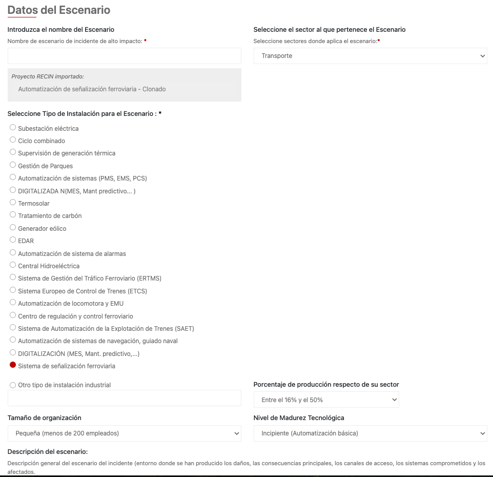 Nota: Antes de comenzar a rellenar, es importante tener en cuenta que por motivos de seguridad, se solicita por favor no incluir en el escenario información sensible o confidencial dado que no es necesaria para la finalidad de ESCIM.